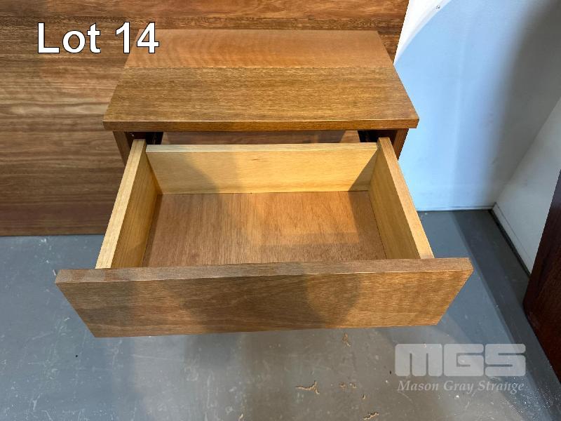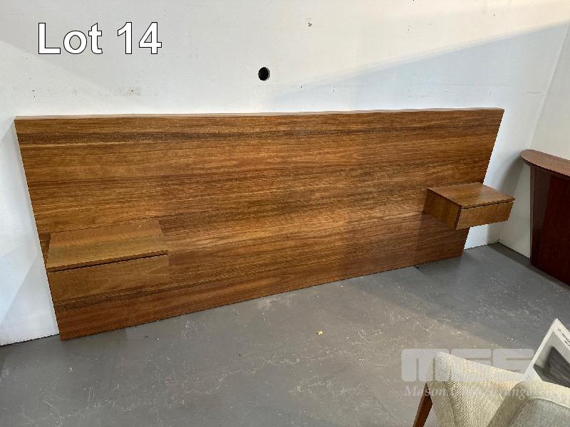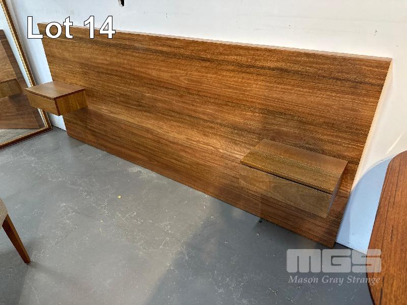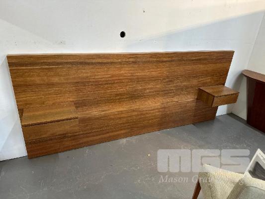KT QUEEN SIZE BED HEAD WITH TRAYS, SPOTTED GUM