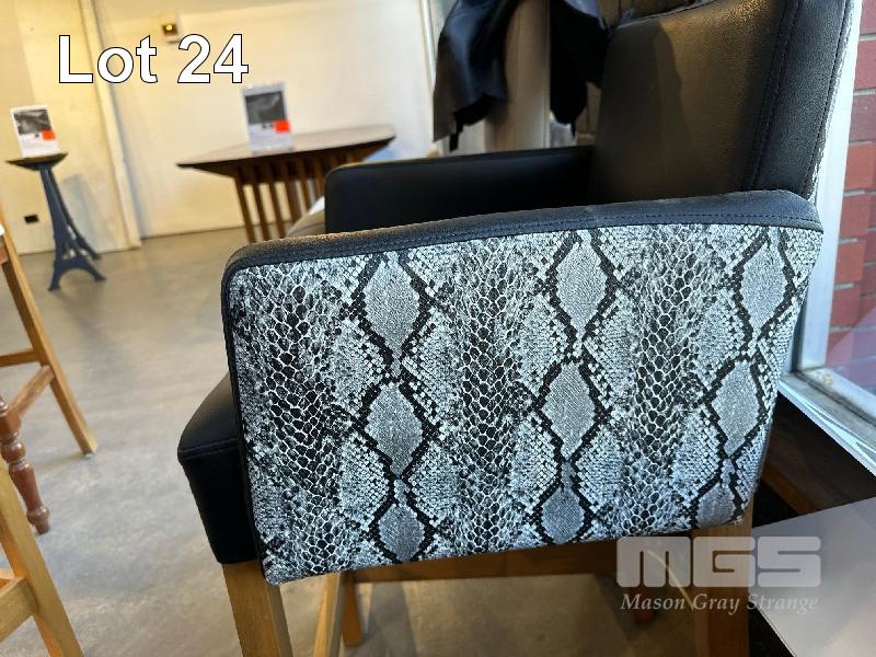 BENCH CHAIR WITH ARMS, VINYL, OAK FRAME, 710mm (H)
