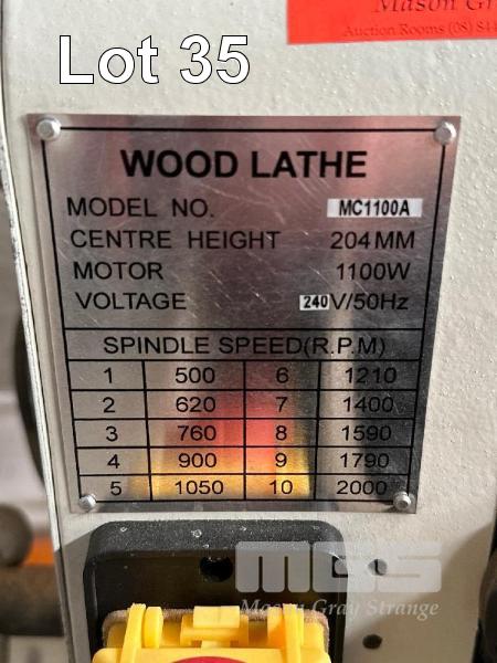 CARBA-TEC WOOD LATHE, MOD: MC1100A, CENTRE HEIGHT: 204mm, 1100W, 10 SPEED, MIN RPM: 500, MAX RPM: 2000, 240V 10AMP PLUG