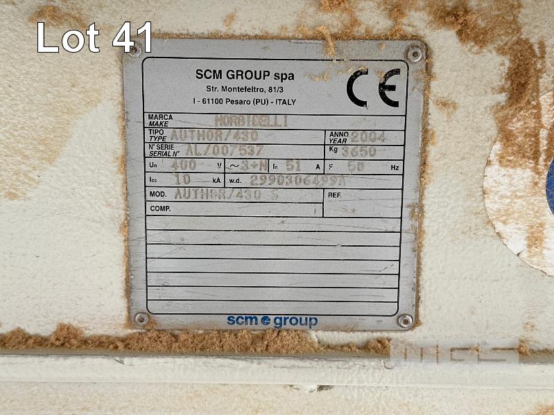 MORBIDELLI CNC ROUTER, MOD: AUTHOR430S, DOM: 2004, WEIGHT: 3,650kg, SERIAL: AL/007537, 415V 3 PHASE