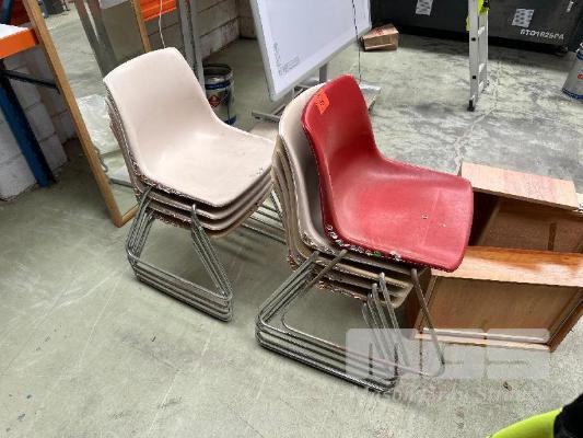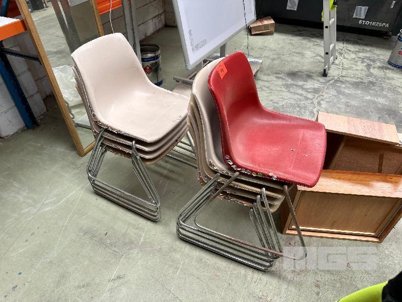 9 x STACKABLE CHAIRS, (NON MATCHING)
