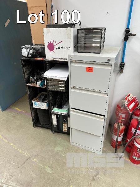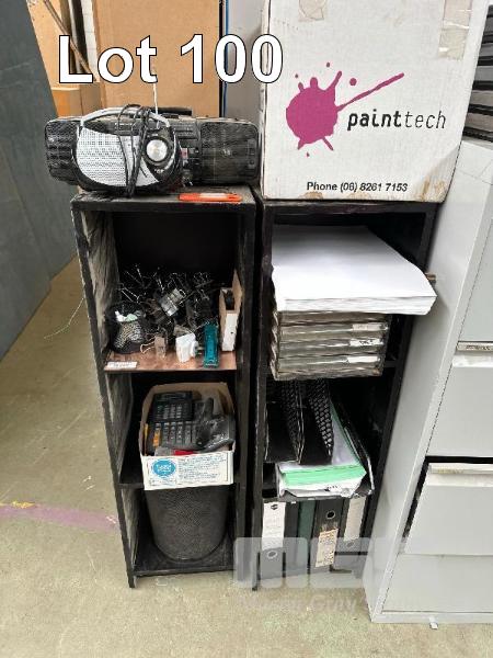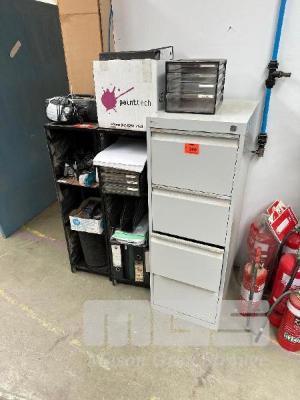 FILING CABINET, 4 DRAWER & 2 x TIMBER STORAGE UNITS, 3 TIER, BLACK