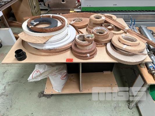 LARGE QUANTITY ASSORTED EDGING WITH TIMBER TROLLEY, CASTOR WHEELS