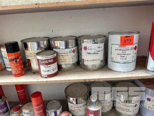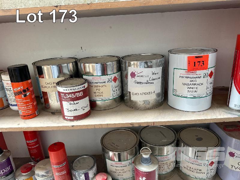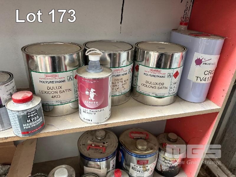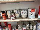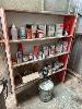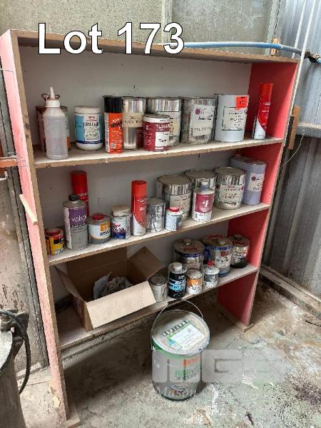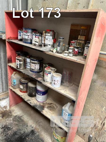 2 x TIMBER SHELF UNITS & CONTENTS ASSORTED PAINTS, STAINS, ETC