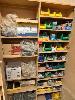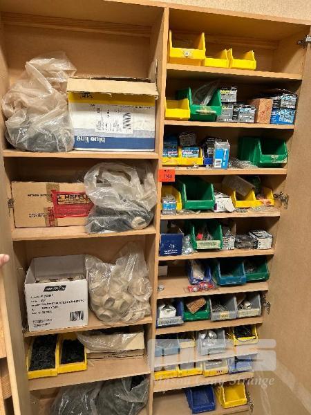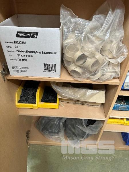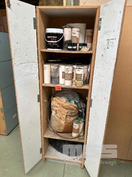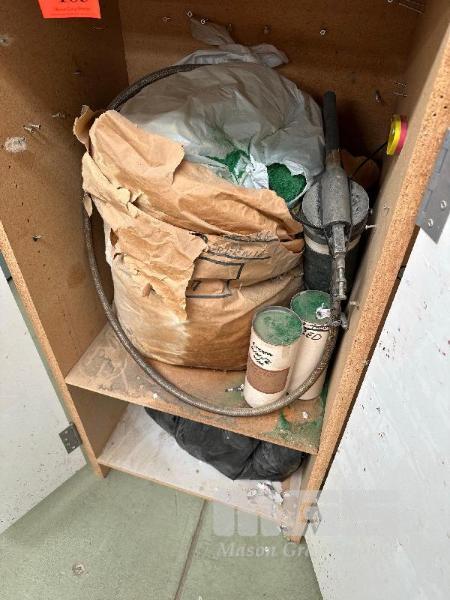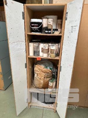 FLOCKING UNIT & CANS OF ASSORTED COLOUR FIBRE WITH CUPBOARD
