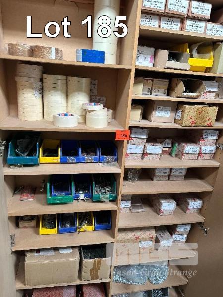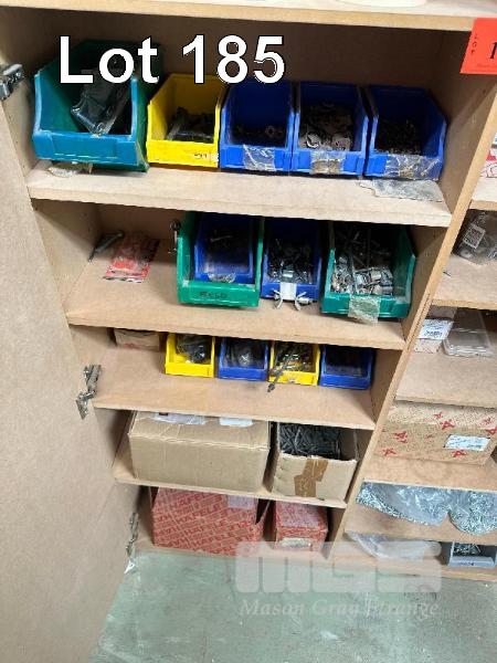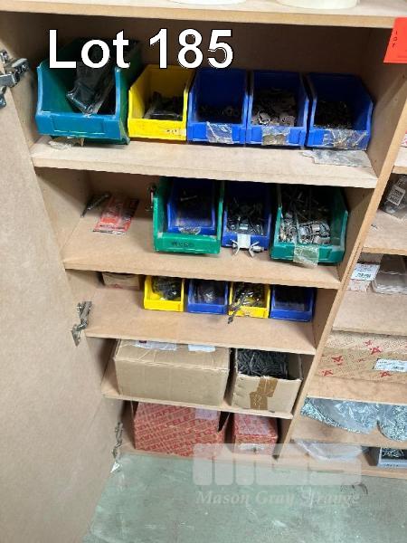 TIMBER CUPBOARD, 2 DOOR & CONTENTS INCLUDING HINGES, GALV BRACKETS & HANDLES