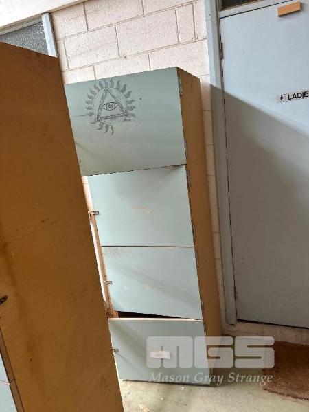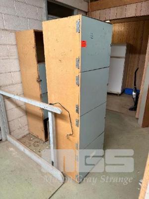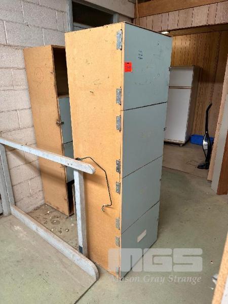 2 x WOODEN CABINETS, 4 DOOR, 1700 (H) x 590 (W) x 480mm (D) & 2 x SHELF UNITS & CONTENTS