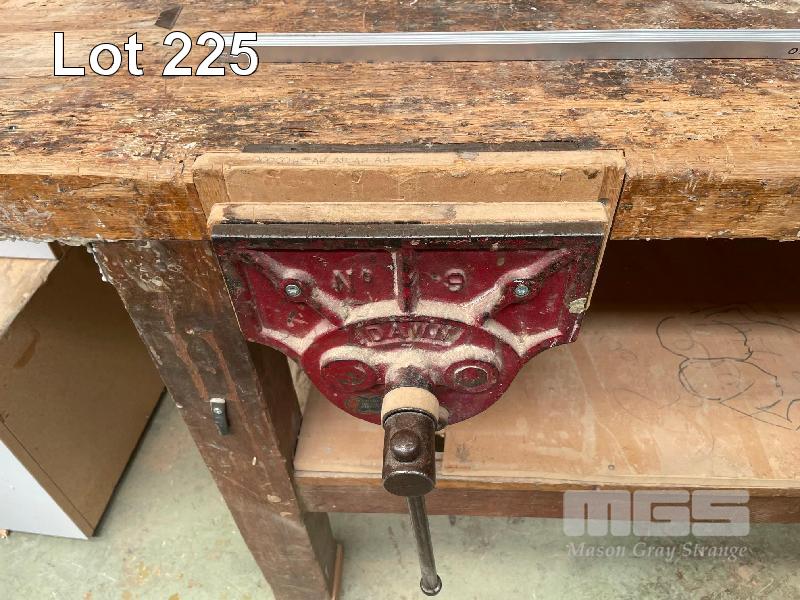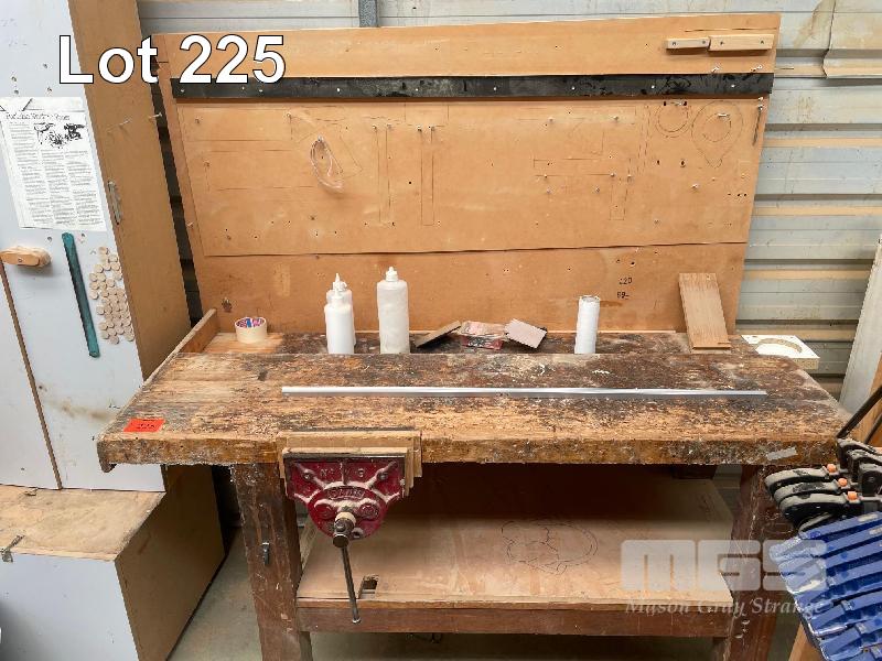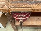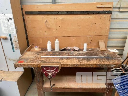 TIMBER WORK BENCH, 1330 x 800mm, TIMBER VICE & SHADOW BOARD & PARTS CUPBOARD