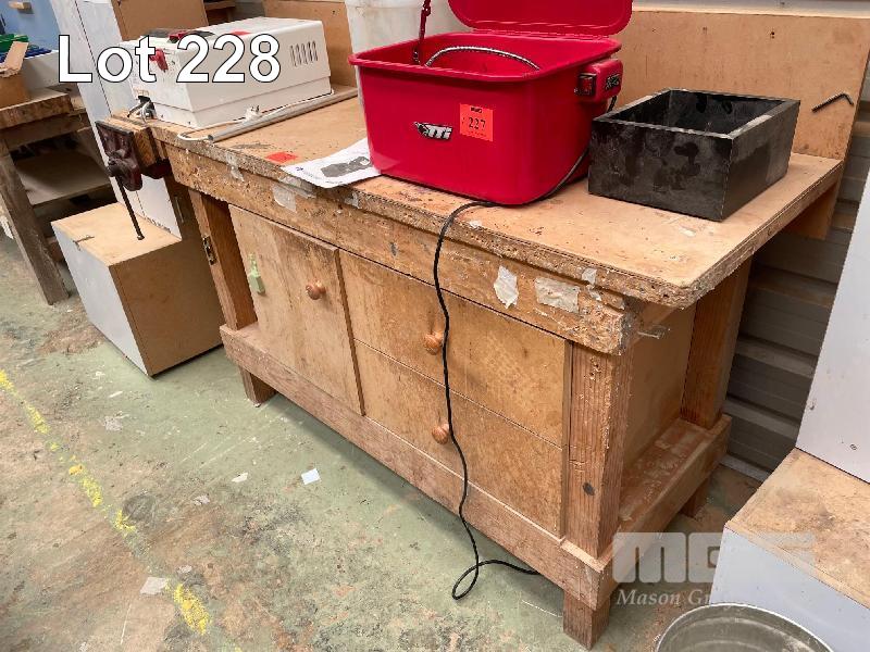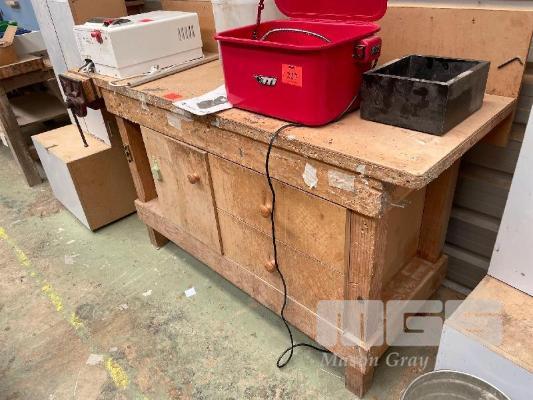 TIMBER BENCH, 1800 x 600mm, DAWN No 9 VICE & STORAGE CUPBOARD