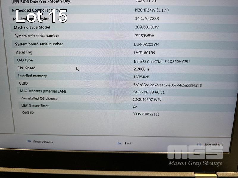 LAPTOP, LENOVO THINKPAD P15 GEN 1 MOBILE WORKSTATION, TYPE 20SU, CORE i7 10850H (10TH GEN) @ 2.7GHz, 16GB DDR4 RAM, 512GB NVMe M.2 SSD, 15.6" WIDESCREEN (1920x1080), 4GB NVIDIA QUADRO T2000 VIDEO, Wi-Fi, BLUETOOTH, WINDOWS 11 PRO INSTALLED & POWER SUPPLY S/N:PF1SRM8W