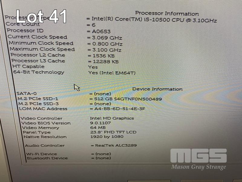 ALL-IN-ONE PC, DELL OPTIPLEX 7480, CORE i5 10500 (10TH GEN) @ 3.1GHz, 8GB DDR4 RAM, 512GB NVMe M.2 SSD, INBUILT 23.8" FHD WIDESCREEN (1920x1080), INTEL HD VIDEO, WEBCAM, 5 x USB, 1 x USB-C, WINDOWS 11 HOME INSTALLED, KEYBOARD & MOUSE S/N:4XX1X63