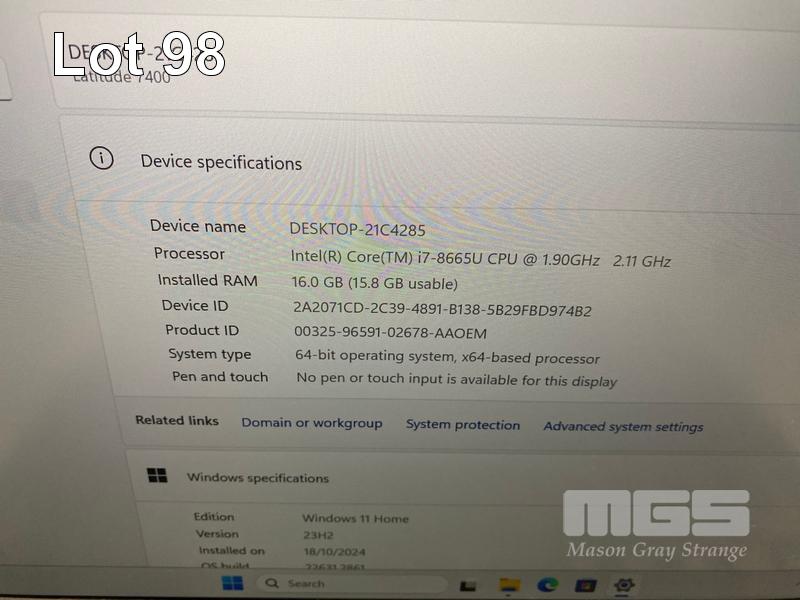 LAPTOP, DELL LATITUDE 7400, CORE i7 8665U (8TH GEN) @ 1.9GHz, 16GB DDR4 RAM, 512GB NVMe M.2 SSD, 14" WIDESCREEN (1920x1080), INTEL UHD GRAPHICS 620, Wi-Fi, BLUETOOTH, WINDOWS 11 HOME INSTALLED & POWER SUPPLY (NOTE: MINOR MARKS ON SCREEN) S/N:BL9K0Z2