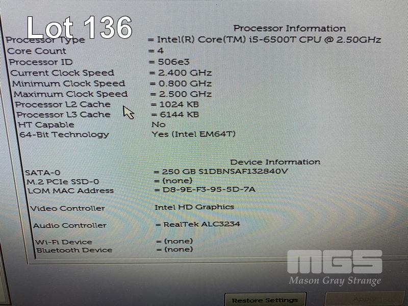 DESKTOP PC, DELL OPTIPLEX 3050 MICRO, CORE i5 6500T (6TH GEN) @ 2.5GHz, 8GB DDR4 RAM, 250GB SSD, INTEL HD VIDEO, 6 x USB, WINDOWS 10 HOME INSTALLED & POWER SUPPLY (65W) (NO KEYBOARD, NO MOUSE) S/N:4HTL6Q2