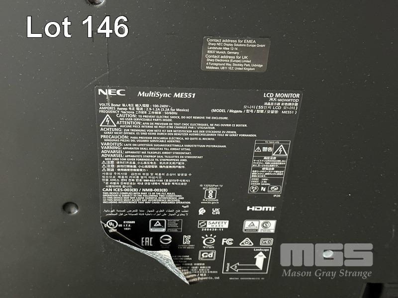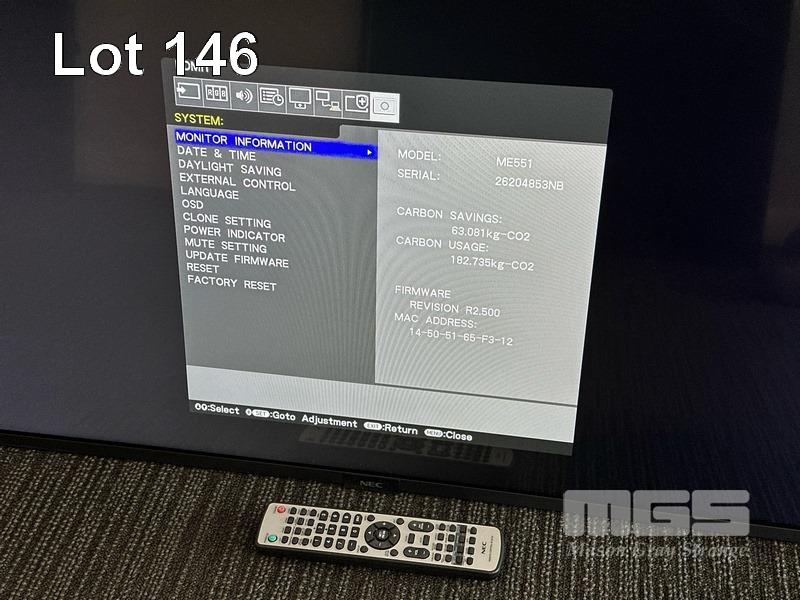 MONITOR, NEC MULTISYNC ME551 55" COMMERCIAL LCD DISPLAY, WITH REMOTE (NO STAND) S/N:26204853NB