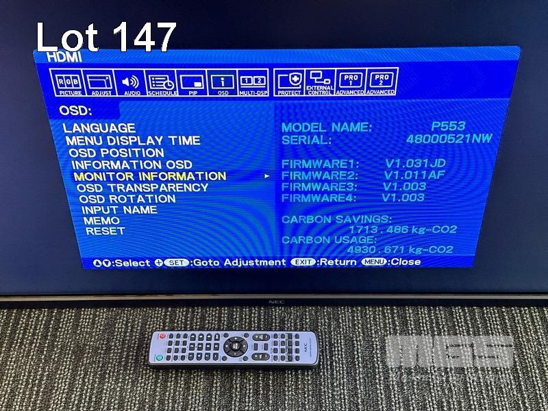 MONITOR, NEC MULTISYNC P553 55" COMMERCIAL LCD DISPLAY, WITH REMOTE (NO STAND)