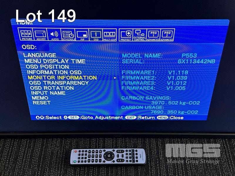 MONITOR, NEC MULTISYNC P553 55" COMMERCIAL LCD DISPLAY, WITH REMOTE (NO STAND) S/N:6X113442NB