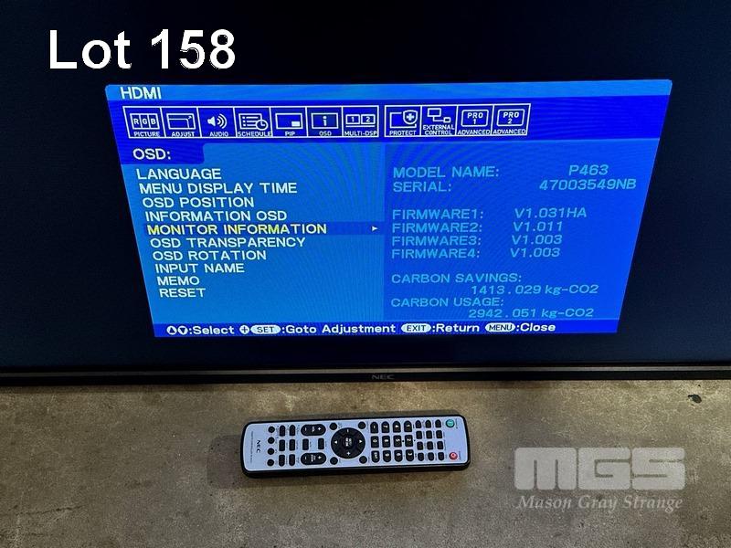 MONITOR, NEC MULTISYNC P463 46" COMMERCIAL LCD DISPLAY, WITH REMOTE (NO STAND) S/N:47003549NB