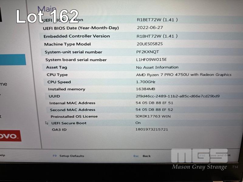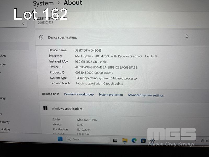 LAPTOP, LENOVO THINKPAD T14 Gen1, TYPE 20UE, AMD RYZEN 7 PRO 4750U @ 1.7GHz, 16GB DDR4 RAM, 512GB NVMe M.2 SSD, 14" TOUCHSCREEN (1920x1080), Wi-Fi, BLUETOOTH, WINDOWS 11 PRO INSTALLED (NO USB-C POWER SUPPLY) (NOTE: 1 x USB-C PORT FAULTY, MARKS ON SCREEN) S/N:PF2KXNQT