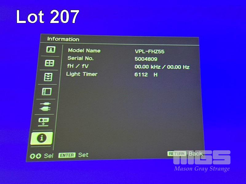 LASER PROJECTOR, SONY VPL-FHZ55 WUXGA 3LCD, 4,000 LUMENS, 6,112 HOURS SHOWING WITH REMOTE S/N:5004809