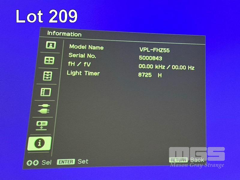LASER PROJECTOR, SONY VPL-FHZ55 WUXGA 3LCD, 4,000 LUMENS, 8,725 HOURS SHOWING WITH REMOTE S/N:5000843