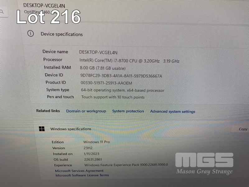 ALL-IN-ONE PC, DELL OPTIPLEX 7460, CORE i7 8700 (8TH GEN) @ 3.2GHz, 8GB DDR4 RAM, 512GB NVMe M.2 SSD, INBUILT 23.8" FHD TOUCHSCREEN (1920x1080), INTEL HD VIDEO, WEBCAM, 5 x USB, 1 x USB-C, WINDOWS 11 PRO INSTALLED, KEYBOARD & MOUSE S/N:89RY8X2