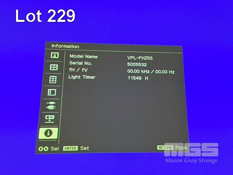 LASER PROJECTOR, SONY VPL-FHZ55 WUXGA 3LCD, 4,000 LUMENS, 11,549 HOURS SHOWING (NO REMOTE) S/N:5005532