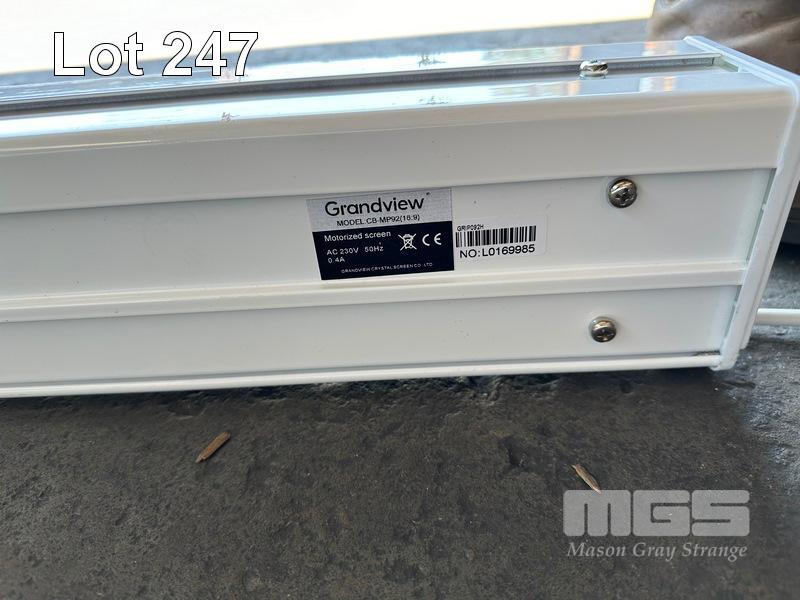 PROJECTION SCREEN, MOTORISED, GRANDVIEW, MODEL CB-MP92, 225cm WIDTH, 240V WITH REMOTE & BRACKETS (NOTE: CONTROLLER REQUIRED)