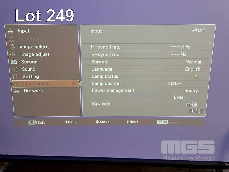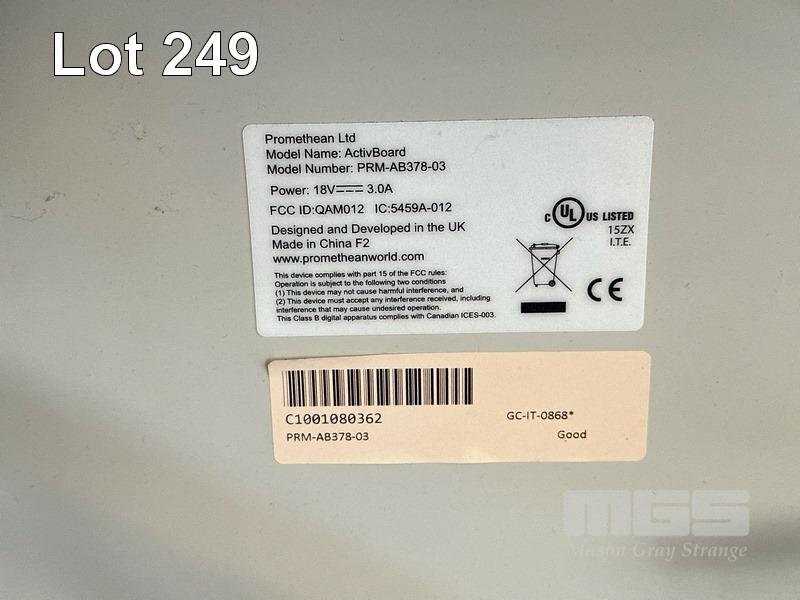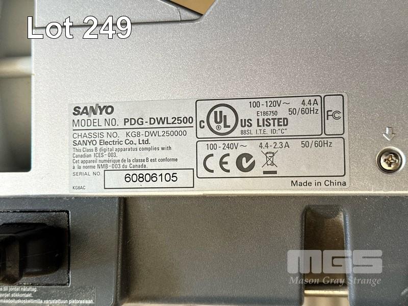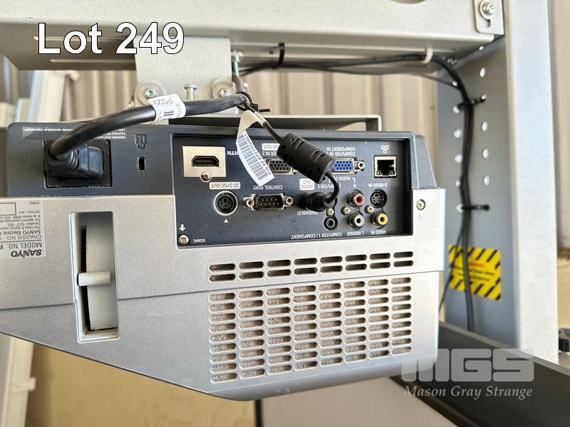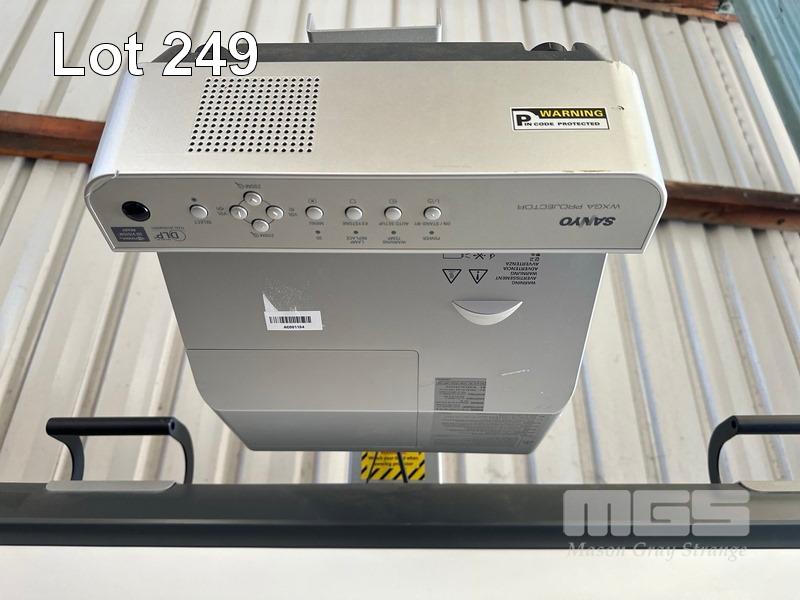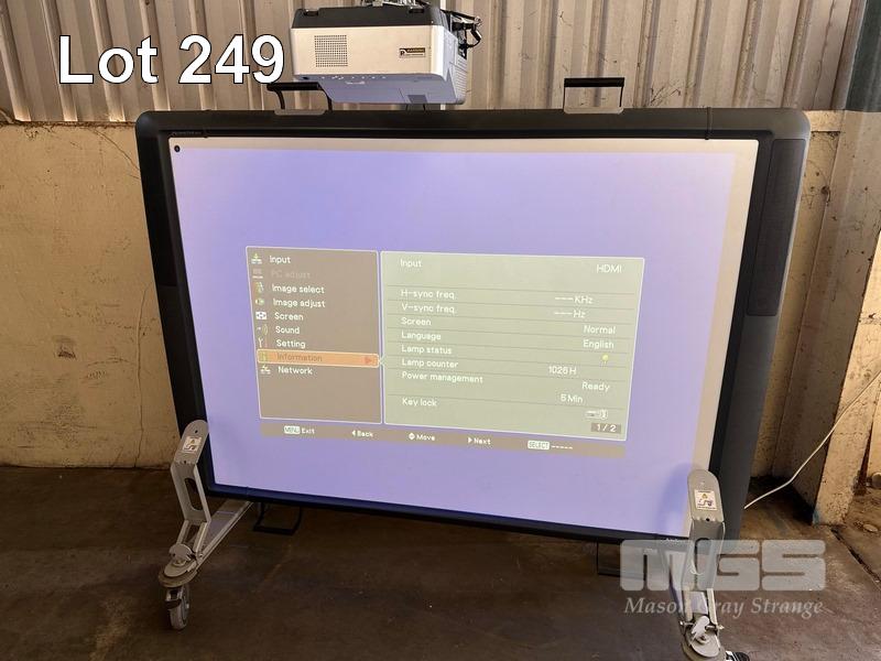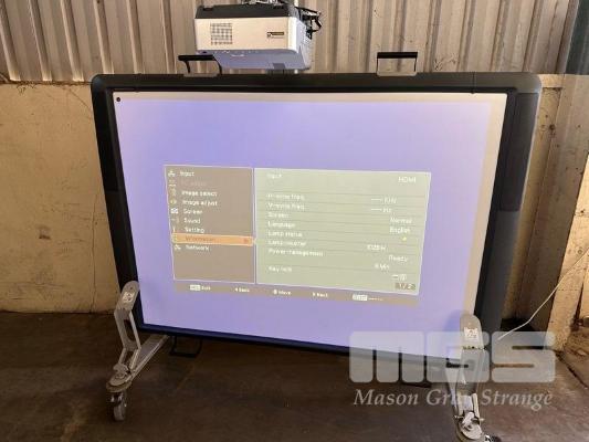 SANYO PDG-DWL2500 ULTRA SHORT-THROW PROJECTOR, 1,026 HOURS SHOWING (NO REMOTE) WITH PROMETHEAN ACTIVBOARD 78" WHITEBOARD, PRM-AB378-03 ON GILKON FREEFRAME MOBILE STAND