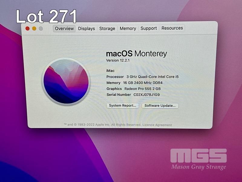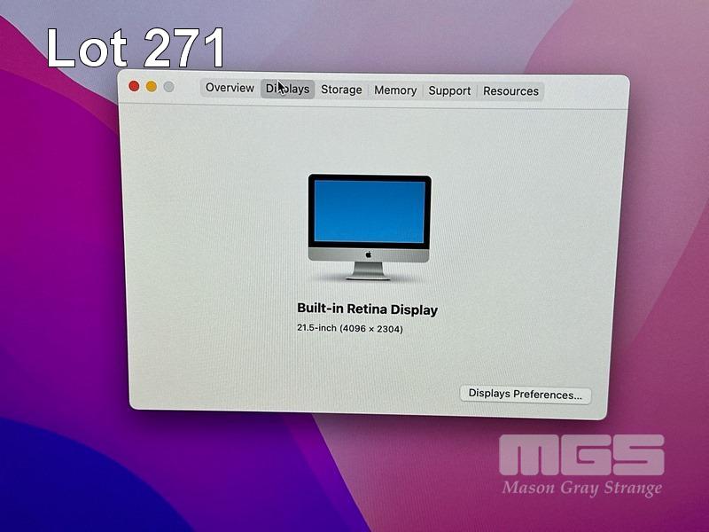 APPLE iMAC (A1418), CORE i5 7400 (7TH GEN) @ 3GHz, 16GB DDR4 RAM, 1TB FUSION DRIVE, BUILT-IN 21.5" RETINA DISPLAY (4096x2304), 2GB RADEON PRO 555 VIDEO, Wi-Fi, BLUETOOTH, MAC OS 12 INSTALLED (NO KEYBOARD, NO MOUSE) S/N:C02XJ07BJ1G9