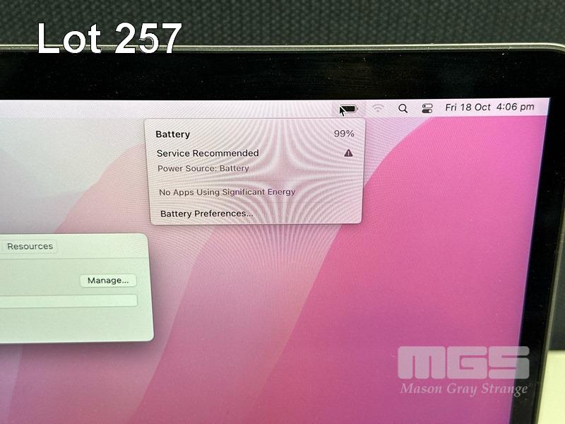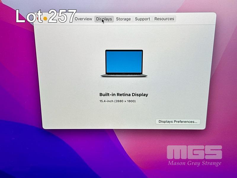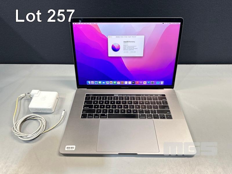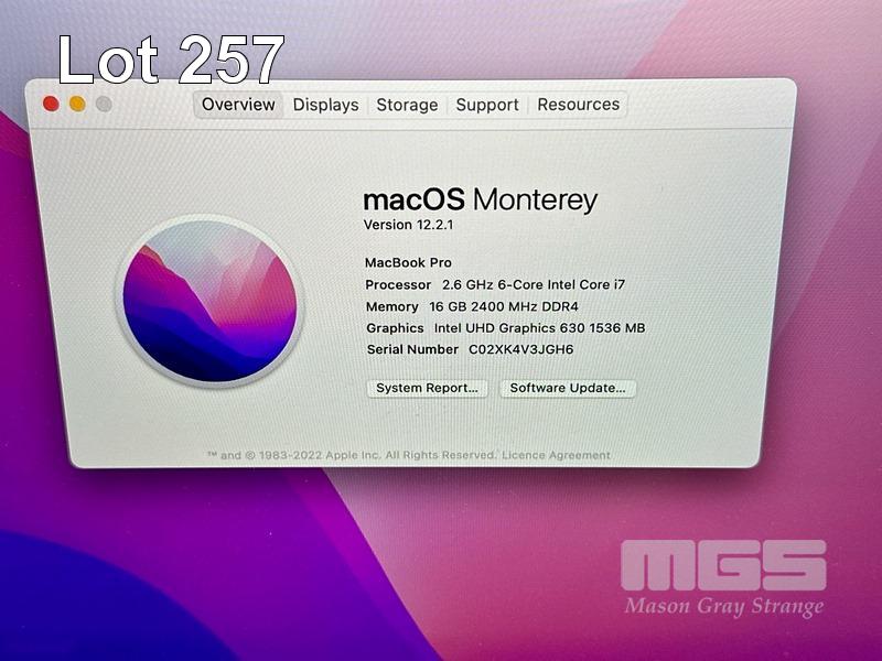 LAPTOP, APPLE MACBOOK PRO (A1990), CORE i7 8850H (8TH GEN) @ 2.3GHz, 16GB DDR4 RAM, 1TB SSD, 15.4" RETINA DISPLAY (2880x1800), INTEL UHD GRAPHICS 630, Wi-Fi, BLUETOOTH, MAC OS 12 INSTALLED & USB-C POWER SUPPLY (NOTE: BATTERY SERVICE RECOMMENDED MESSAGE, MINOR MARKS ON SCREEN) S/N:C02XK4V3JGH6