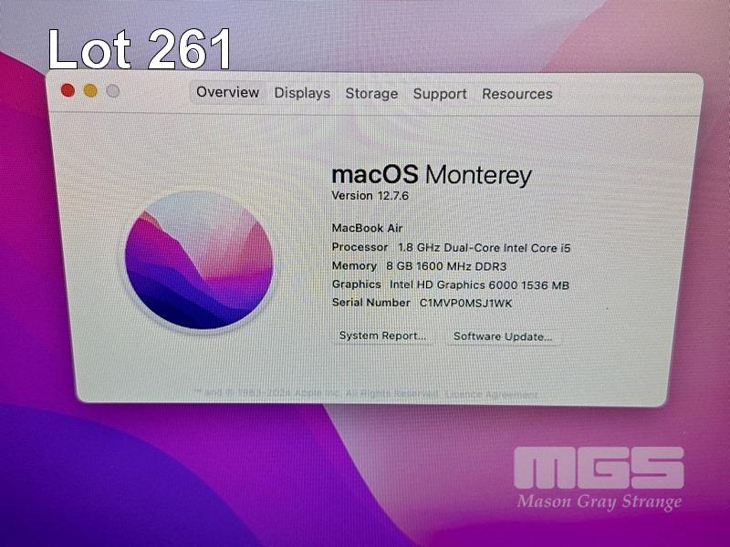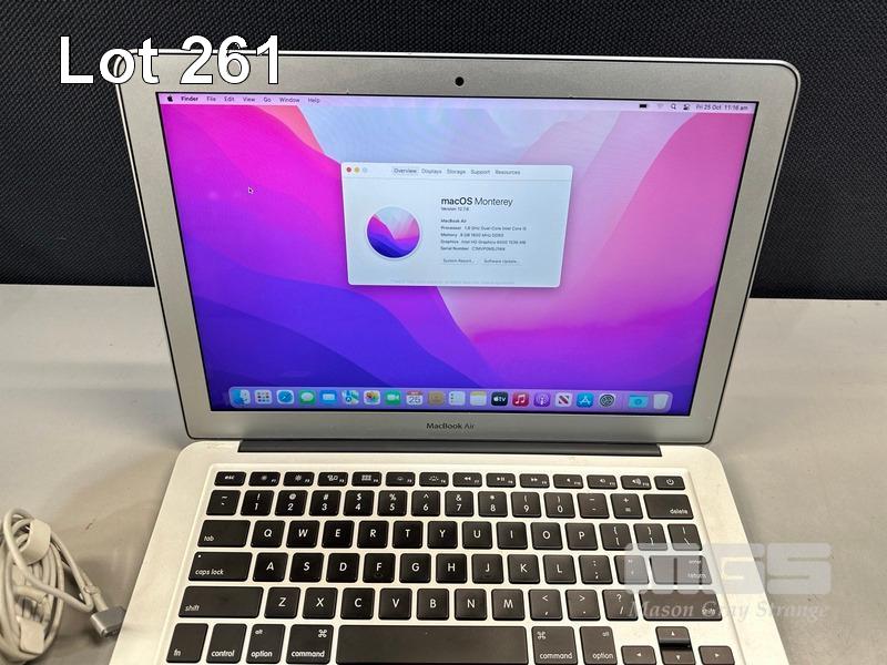 LAPTOP, APPLE MACBOOK AIR (A1466), CORE i5 5350U (5TH GEN) @ 1.8GHz, 8GB DDR3 RAM, 128GB SSD, 13.3" DISPLAY (1440x900), INTEL HD GRAPHICS 6000, Wi-Fi, BLUETOOTH, MAC OS 12 INSTALLED & POWER SUPPLY S/N:C1MVP0MSJ1WK