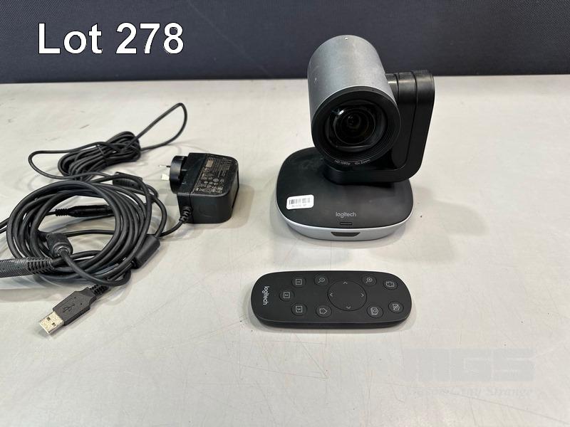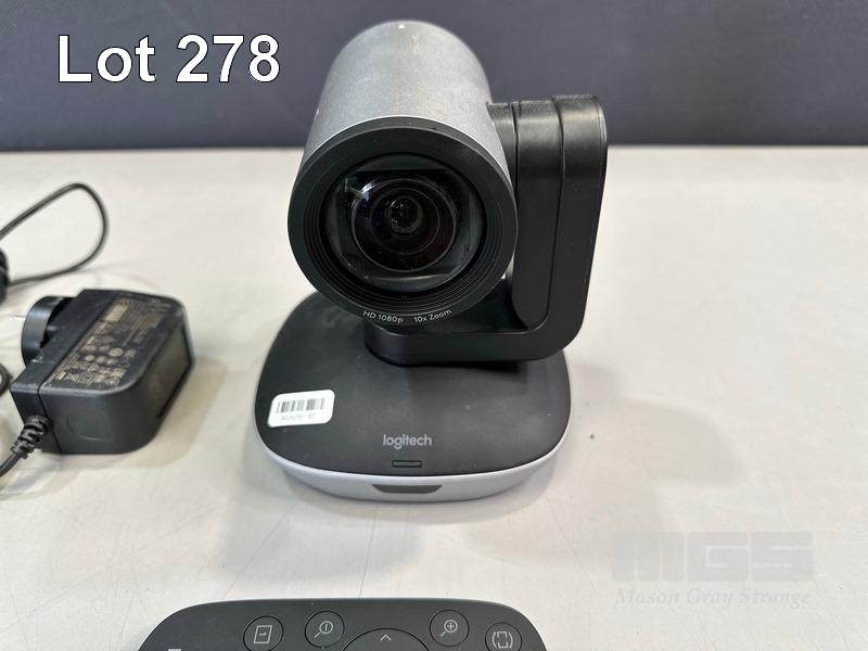 LOGITECH PTZ PRO 2 VIDEO CONFERENCE CAMERA, MODEL V-U0035, REMOTE & POWER SUPPLY