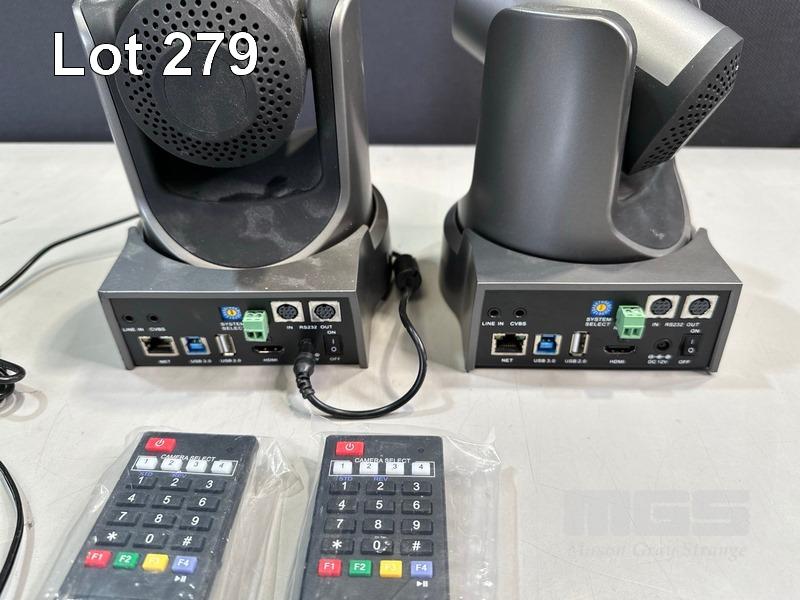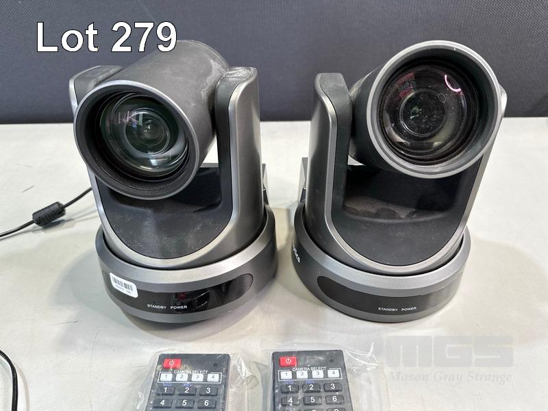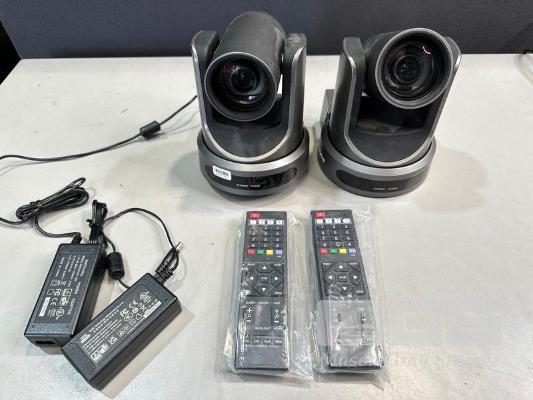 2 x PTZ OPTICS USB HD LIVE STREAMING CAMERAS, MODEL PT12X-USB-GY-G2, WITH REMOTES & POWER SUPPLIES
