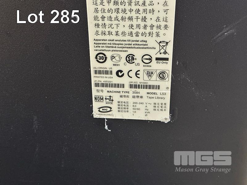 TAPE LIBRARY, IBM SYSTEM STORAGE, T3500, TYPE 3584, MODEL L53 (BASE FRAME), - COMPRISING 6 x TAPE DRIVES, LTO6, FC SHORT-WAVE, TYPE 3588-F6A WITH IBM TYPE 3584 MODEL S54 EXPANSION FRAME, WITH KEYS & MANUAL, EACH FRAME IS 180cm x 120cm x 80cm ON CASTORS S/N:7824359, 78T0497
