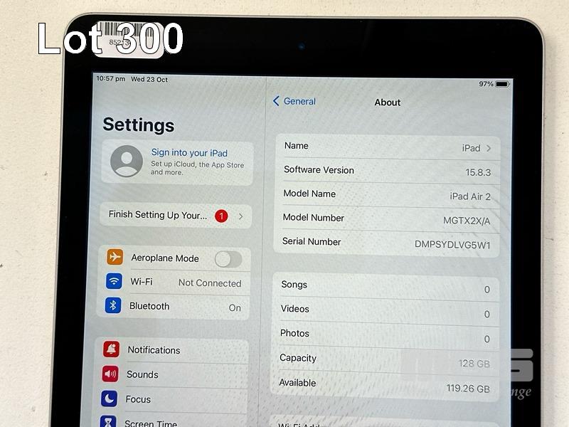 APPLE iPAD AIR 2, 128GB, Wi-Fi, SPACE GREY, MODEL MGTX2X/A, A1566 (NO CABLE, NO CHARGER) S/N:DMPSYDLVG5W1