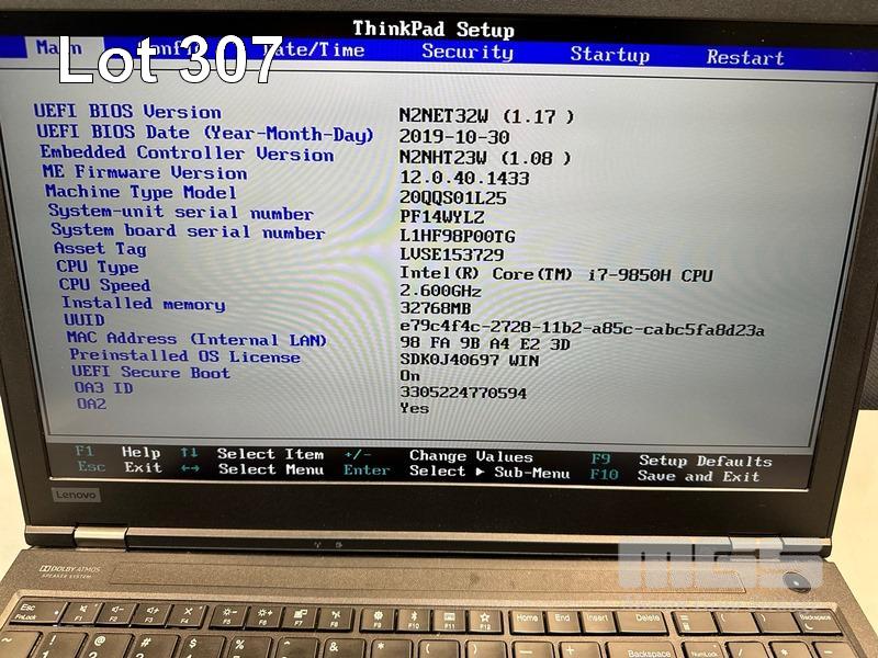 LAPTOP, LENOVO THINKPAD P53 MOBILE WORKSTATION, TYPE 20QQ, CORE i7 9850H (9TH GEN) @ 2.6GHz, 32GB DDR4 RAM, 512GB NVMe M.2 SSD, 525GB SSD, 15.6" WIDESCREEN (1920x1080), 4GB NVIDIA QUADRO T2000 VIDEO, Wi-Fi, BLUETOOTH, WINDOWS 11 PRO INSTALLED & POWER SUPPLY (NOTE: MINOR MARKS ON SCREEN) S/N:PF14WYLZ