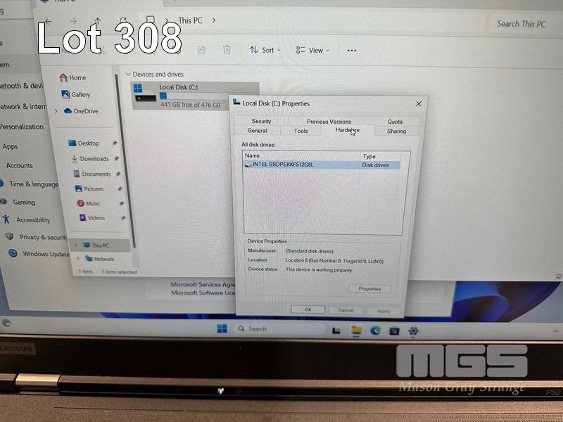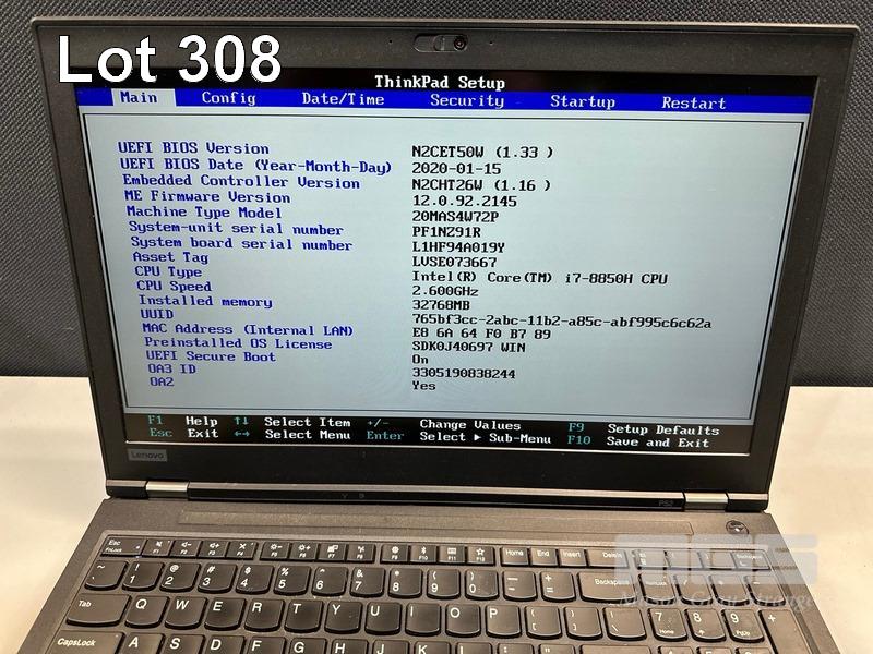 LAPTOP, LENOVO THINKPAD P52 MOBILE WORKSTATION, TYPE 20MA, CORE i7 8850H (8TH GEN) @ 2.6GHz, 32GB DDR4 RAM, 512GB NVMe M.2 SSD, 15.6" WIDESCREEN (1920x1080), 4GB NVIDIA QUADRO P2000 VIDEO, Wi-Fi, BLUETOOTH, WINDOWS 11 PRO INSTALLED (NO POWER SUPPLY) (NOTE: MARKS ON SCREEN) S/N:PF1NZ91R