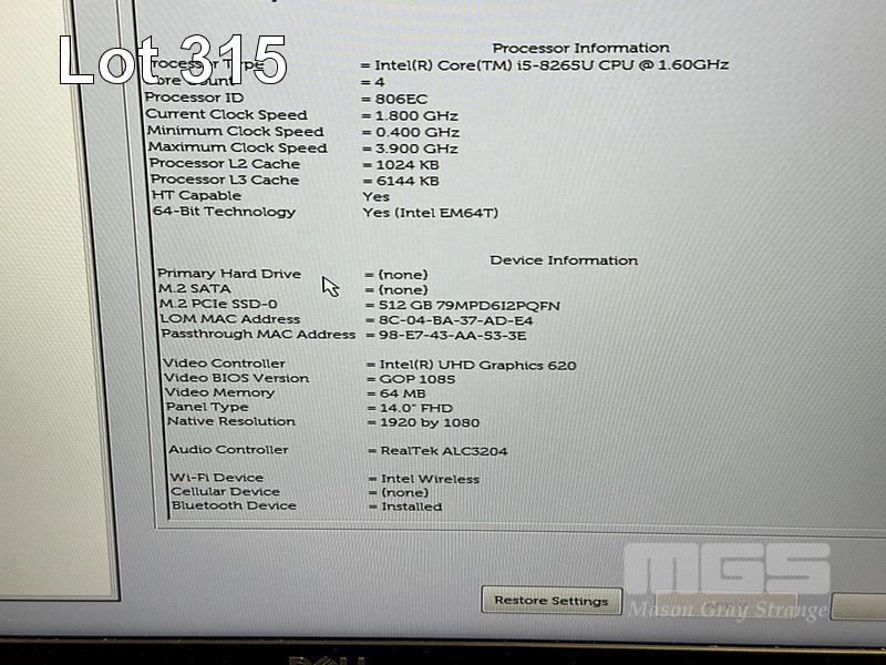 LAPTOP, DELL LATITUDE 5400, CORE i5 8265U (8TH GEN) @ 1.6GHz, 16GB DDR4 RAM, 512GB NVMe M.2 SSD, 14" WIDESCREEN (1920x1080), INTEL UHD GRAPHICS 620, Wi-Fi, BLUETOOTH, WINDOWS 11 HOME INSTALLED & POWER SUPPLY S/N:JL7N0Z2