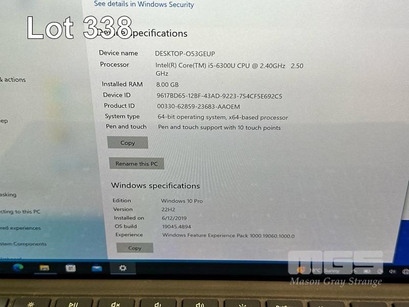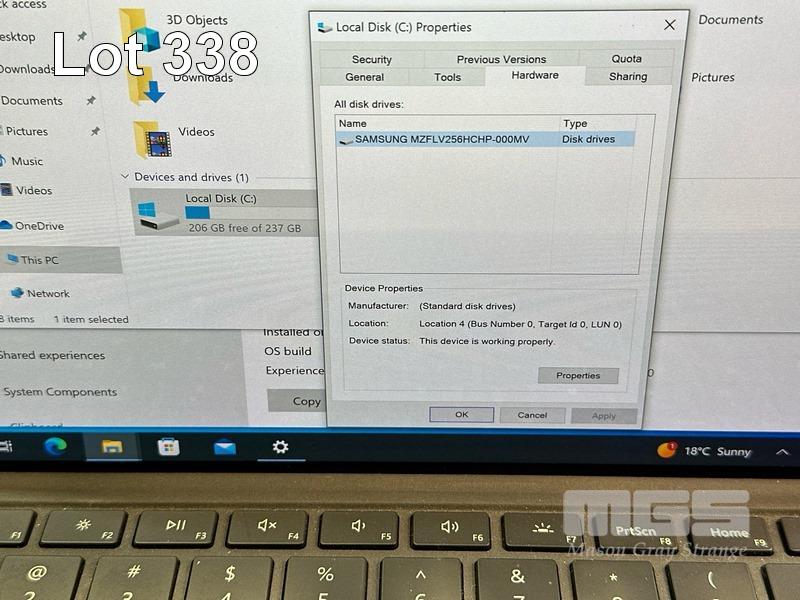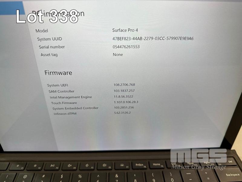 TABLET PC, MICROSOFT SURFACE PRO 4, MODEL 1724, CORE i5 6300U (6TH GEN) @ 2.4GHz, 8GB RAM, 256GB SSD, 12.3" TOUCHSCREEN (2736x1824), INTEL HD GRAPHICS 520, Wi-Fi, BLUETOOTH, WINDOWS 10 PRO INSTALLED, KEYBOARD TYPE COVER & POWER SUPPLY S/N:054476261553