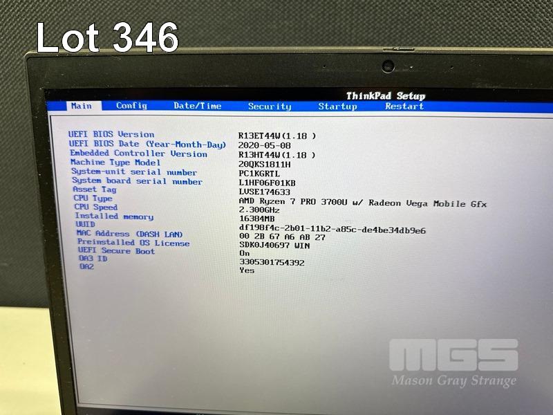 LAPTOP, LENOVO THINKPAD T495s, TYPE 20QK, AMD RYZEN 7 PRO 3700U @ 2.3GHz, 16GB DDR RAM, 512GB NVMe M.2 SSD, 14" TOUCHSCREEN (1920x1080), Wi-Fi, BLUETOOTH, WINDOWS 11 PRO INSTALLED (NO USB-C POWER SUPPLY) (NOTE: MARKS ON SCREEN) S/N:PC1KGRTL
