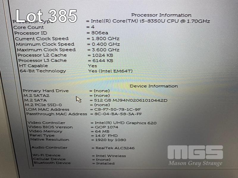 LAPTOP, DELL LATITUDE 5490, CORE i5 8350U (8TH GEN) @ 1.7GHz, 8GB DDR4 RAM, 512GB M.2 SSD, 14" WIDESCREEN (1920x1080), INTEL UHD GRAPHICS 620, Wi-Fi, BLUETOOTH, WINDOWS 11 HOME INSTALLED & POWER SUPPLY S/N:BMV1QV2