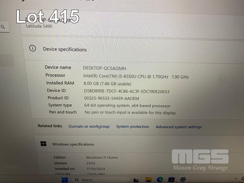 LAPTOP, DELL LATITUDE 5490, CORE i5 8350U (8TH GEN) @ 1.7GHz, 8GB DDR4 RAM, 512GB M.2 SSD, 14" WIDESCREEN (1920x1080), INTEL UHD GRAPHICS 620, Wi-Fi, BLUETOOTH, WINDOWS 11 HOME INSTALLED & POWER SUPPLY (NOTE: MINOR MARKS ON SCREEN) S/N:8VCDVT2