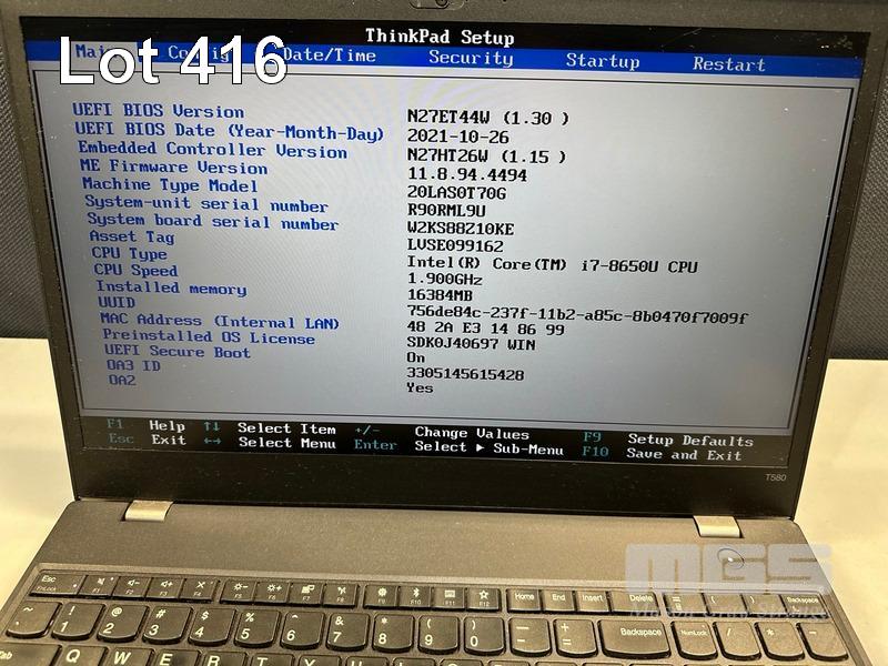 LAPTOP, LENOVO THINKPAD T580, TYPE 20LA, CORE i7 8650U (8TH GEN) @ 1.9GHz, 16GB DDR4 RAM, 512GB NVMe M.2 SSD, 15.6" WIDESCREEN (1920x1080), INTEL UHD GRAPHICS, Wi-Fi, BLUETOOTH, WINDOWS 11 PRO INSTALLED (NO USB-C POWER SUPPLY) (NOTE: MAJOR MARKS & SPOTS ON SCREEN) S/N:R90RML9U