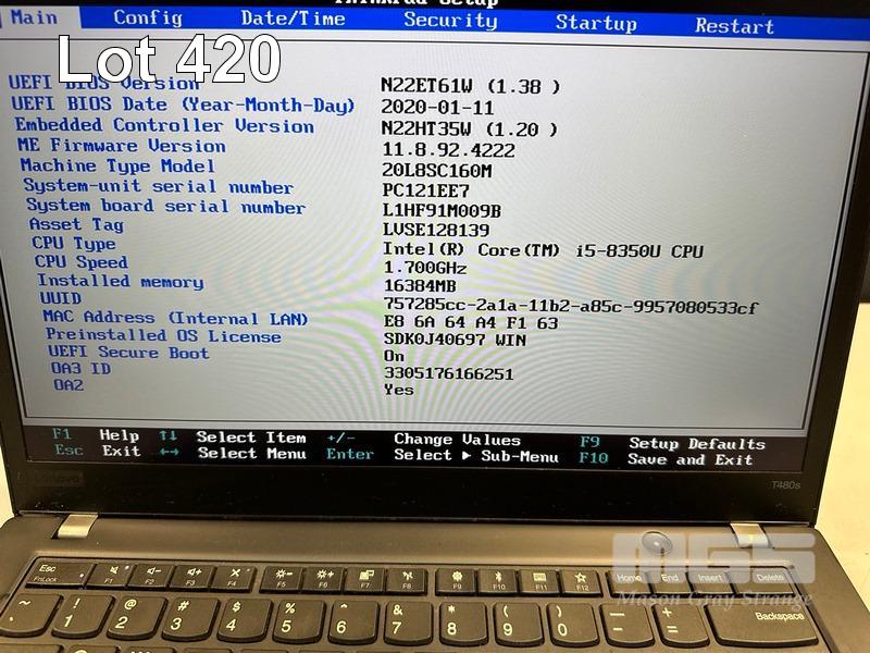 LAPTOP, LENOVO THINKPAD T480s, TYPE 20L8, CORE i5 8350U (8TH GEN) @ 1.7GHz, 16GB DDR4 RAM, 256GB NVMe M.2 SSD, 14" TOUCHSCREEN (1920x1080), INTEL HD VIDEO, Wi-Fi, BLUETOOTH, WINDOWS 11 PRO INSTALLED (NO USB-C POWER SUPPLY) (NOTE: MINOR MARKS ON SCREEN) S/N:PC121EE7