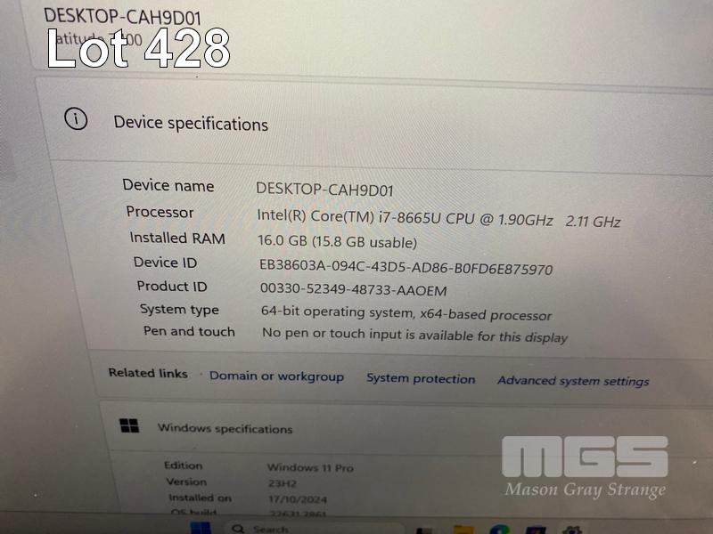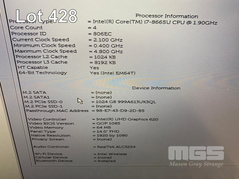 LAPTOP, DELL LATITUDE 7400, CORE i7 8665U (8TH GEN) @ 1.9GHz, 16GB DDR4 RAM, 1TB NVMe M.2 SSD, 14" WIDESCREEN (1920x1080), INTEL UHD GRAPHICS 620, Wi-Fi, BLUETOOTH, WINDOWS 11 HOME INSTALLED (NO POWER SUPPLY) (NOTE: RUBBER PAD PART MISSING ON BOTTOM OF LAPTOP, BATTERY NOT HOLDING CHARGE) S/N:56BFZY2