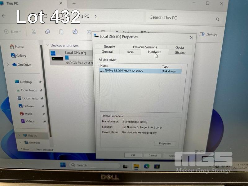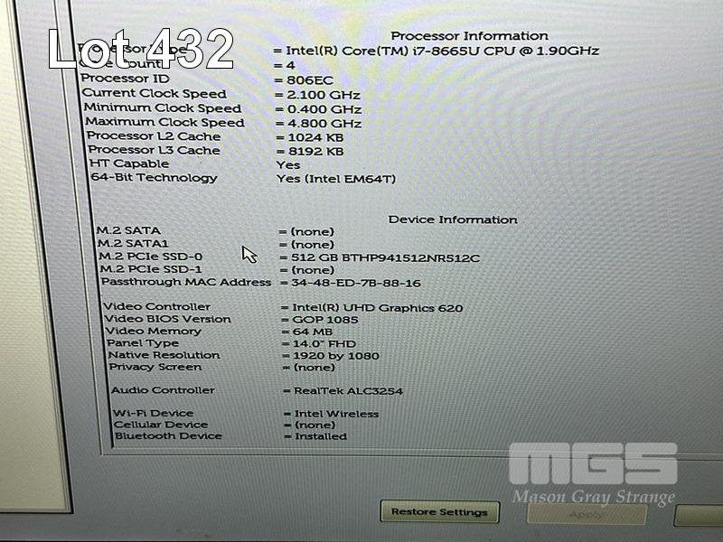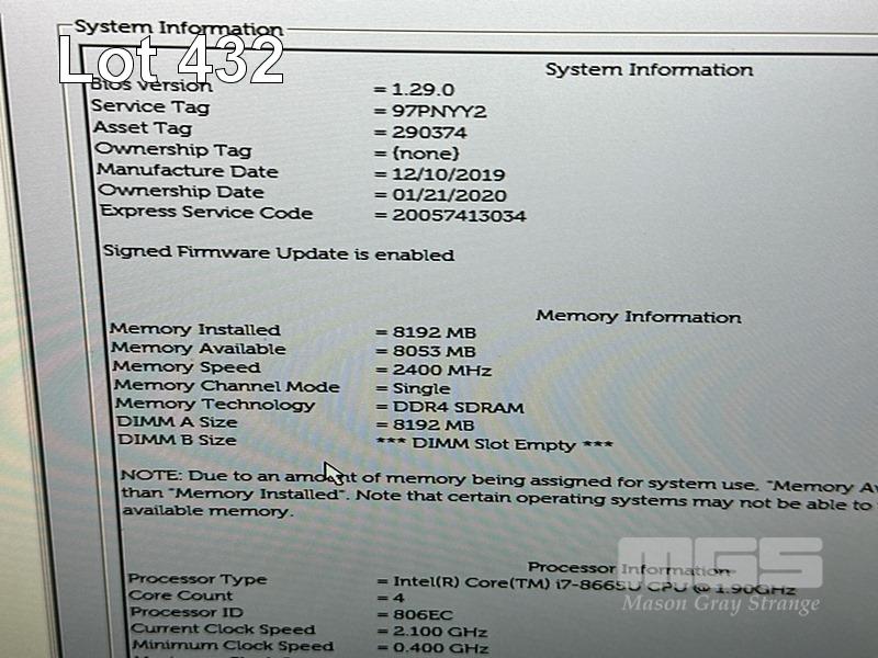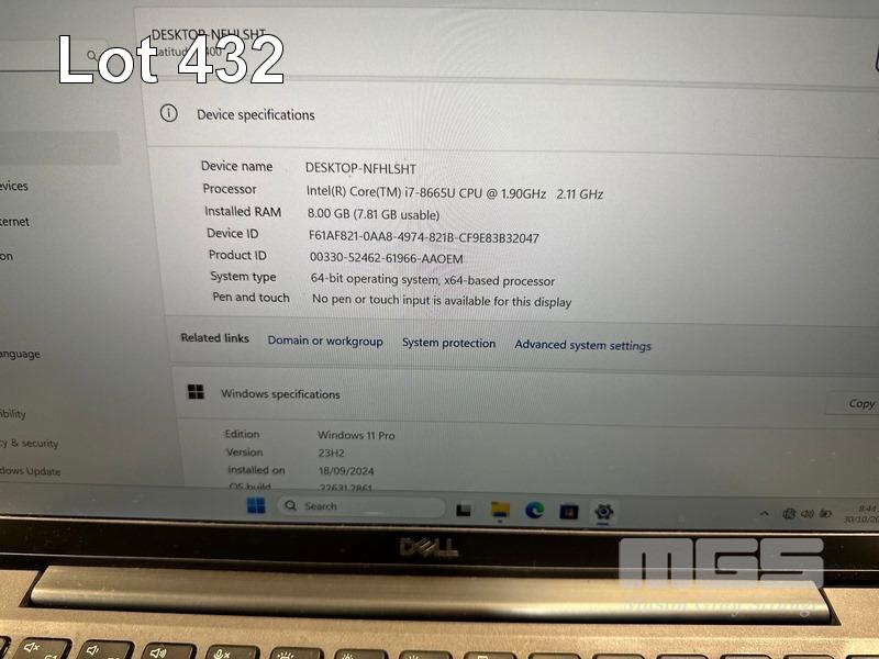 LAPTOP, DELL LATITUDE 7400, CORE i7 8665U (8TH GEN) @ 1.9GHz, 8GB DDR4 RAM, 512GB NVMe M.2 SSD, 14" WIDESCREEN (1920x1080), INTEL UHD GRAPHICS 620, Wi-Fi, BLUETOOTH, WINDOWS 11 PRO INSTALLED (NO POWER SUPPLY) (NOTE: BATTERY FAULT, RUBBER PAD PART MISSING ON BOTTOM OF LAPTOP) S/N:97PNYY2