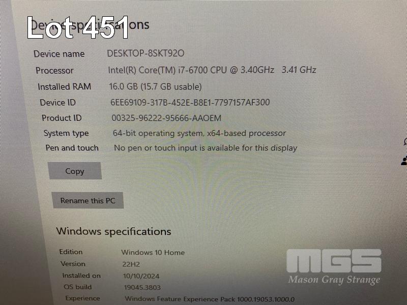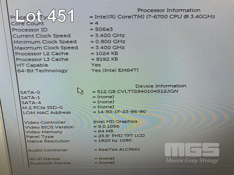ALL-IN-ONE PC, DELL OPTIPLEX 7450, CORE i7 6700 (6TH GEN) @ 3.4GHz, 16GB DDR4 RAM, 512GB SSD, INBUILT 23.8" FHD WIDESCREEN (1920x1080), INTEL HD VIDEO, WEBCAM, 7 x USB, 1 x USB-C, WINDOWS 10 HOME INSTALLED, KEYBOARD & MOUSE S/N:GV5T9M2