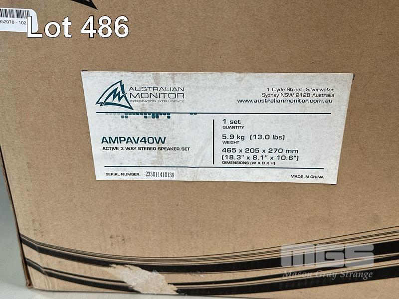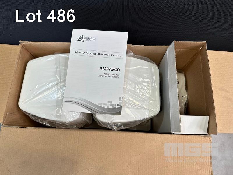 PAIR AUSTRALIAN MONITOR AMPAV40 5.25" SPEAKERS WITH REMOTE (NO CABLES) (IN BOX)