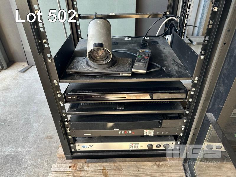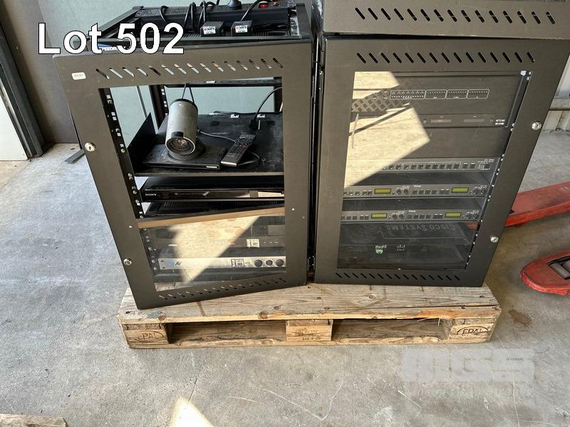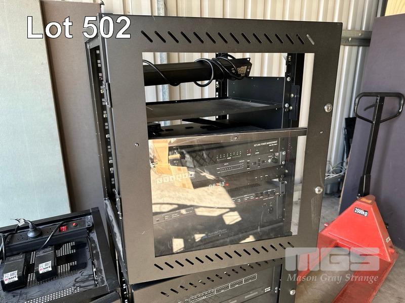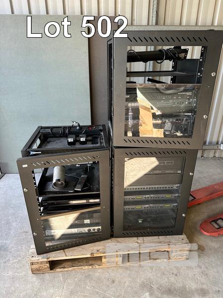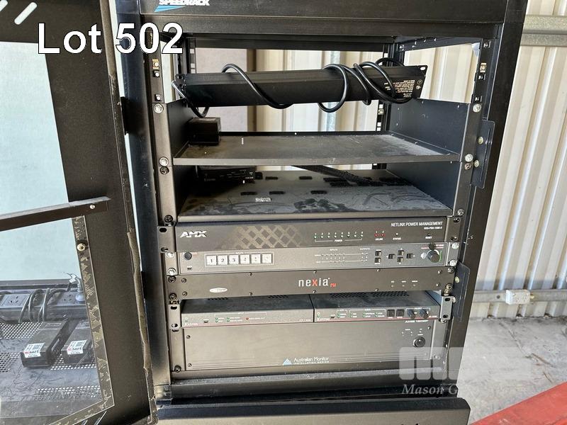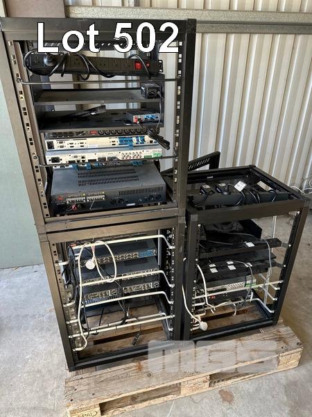 2 x DATA RACK FRAMES, 15RU WITH DOORS (NO KEYS) 1 x DATA RACK FRAME, 12RU WITH DOOR (NO KEYS) WITH CONTENTS INC. TANDBERG PRECISION HD CAMERA, NEXIA, EXTRON & AMX EQUIPMENT, AUSTRALIAN MONITOR AMPLIFIERS, SONY BLU-RAY PLAYER, POWERBOARDS