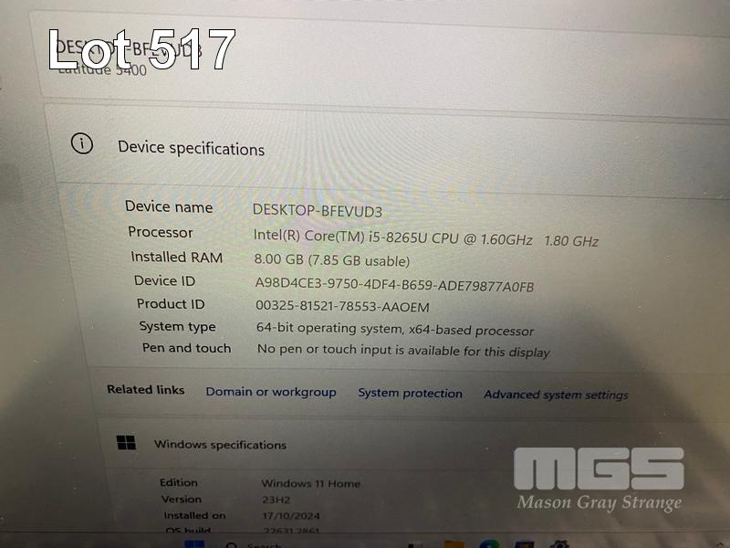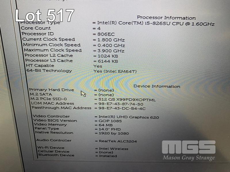 LAPTOP, DELL LATITUDE 5400, CORE i5 8265U (8TH GEN) @ 1.6GHz, 8GB DDR4 RAM, 512GB NVMe M.2 SSD, 14" WIDESCREEN (1920x1080), INTEL UHD GRAPHICS 620, Wi-Fi, BLUETOOTH, WINDOWS 11 HOME INSTALLED (NO POWER SUPPLY) (NOTE: SWOLLEN BATTERY, MARKS ON SCREEN) S/N:6RSZYY2